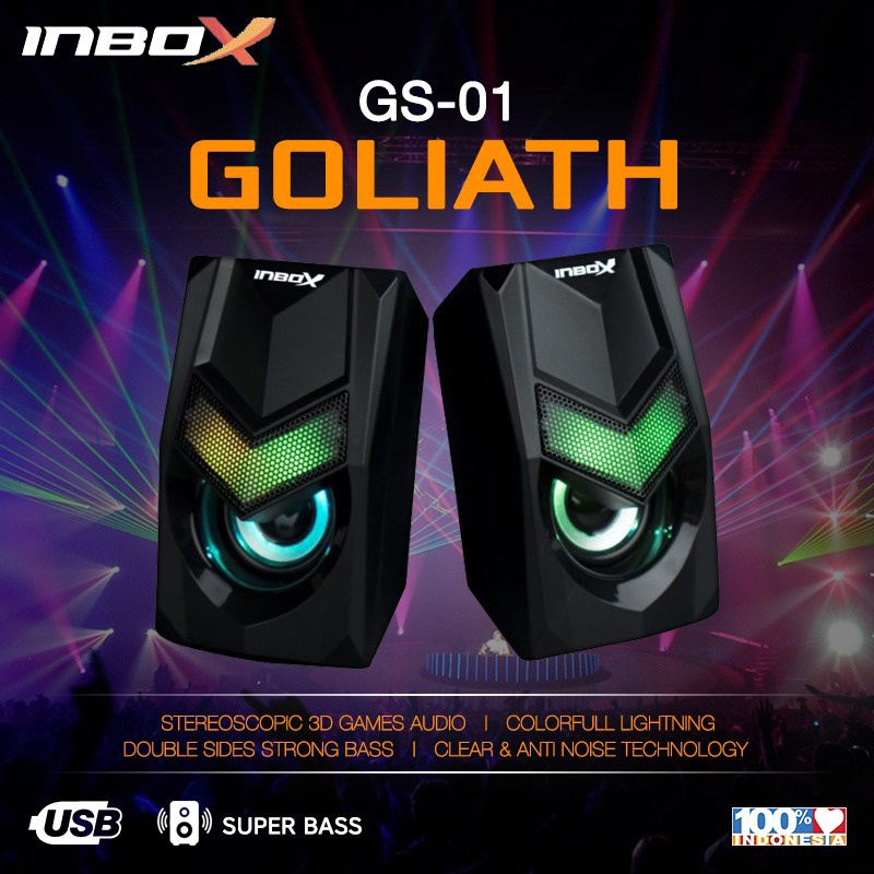 Imperion INBOX GS-01 GOLIATH menghasilkan suara yang berkualitas dan tampilan yang memberikan kenyamanan dengan pencahayaan Cool Colorfull Lighting