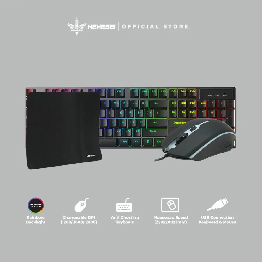 Paket 3 in 1 Combo Gaming Keyboard di lengkapi dengan mouse dan mousepad paket lengkap yang di desain khusus untuk menemani kemenangan bermain kamu