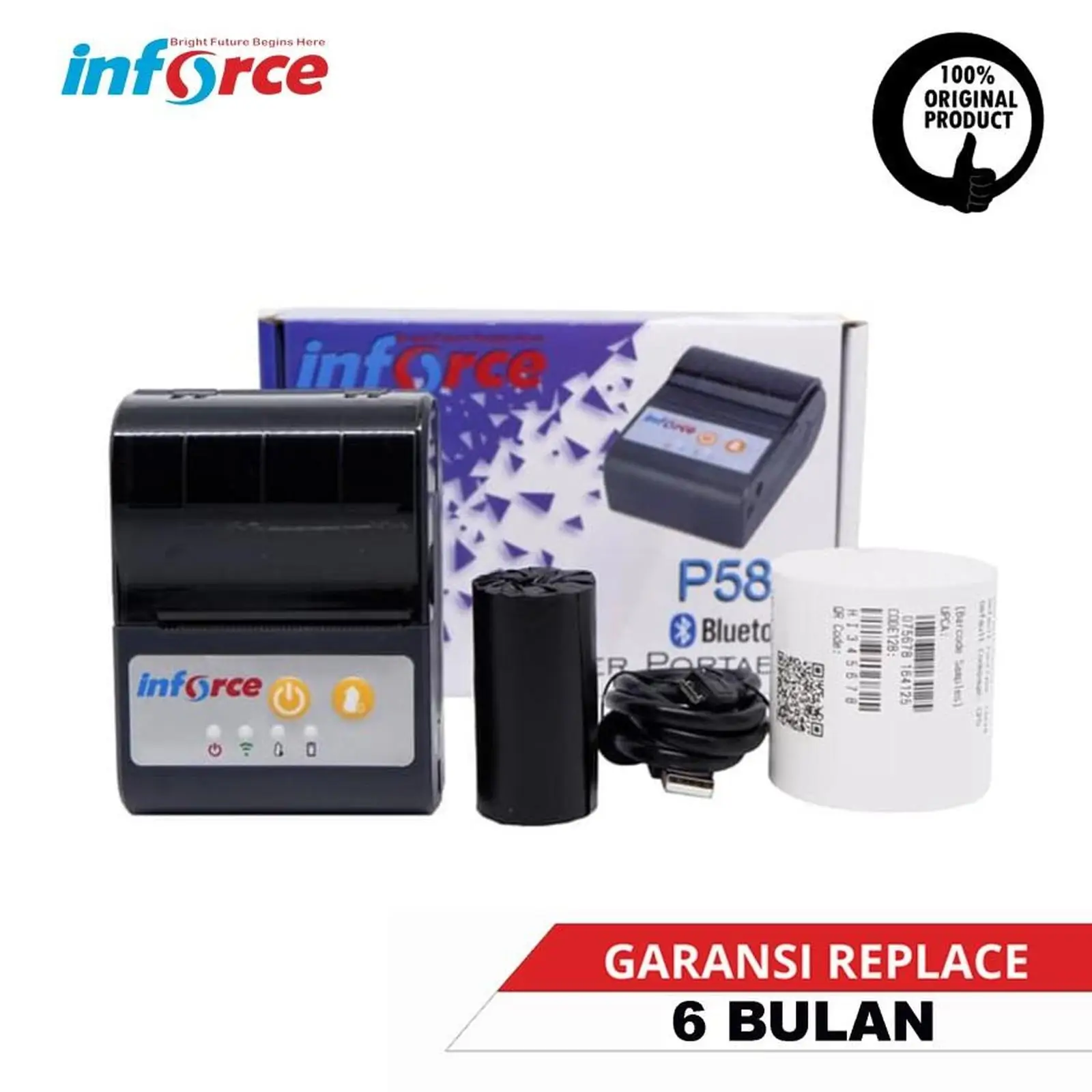 Inforce Portable Printer P58C hadir dengan design yang ringan dan mudah di bawa kemana saja. Printer ini dapat disambungkan dengan sistem operasi Android melalui bluetooth.