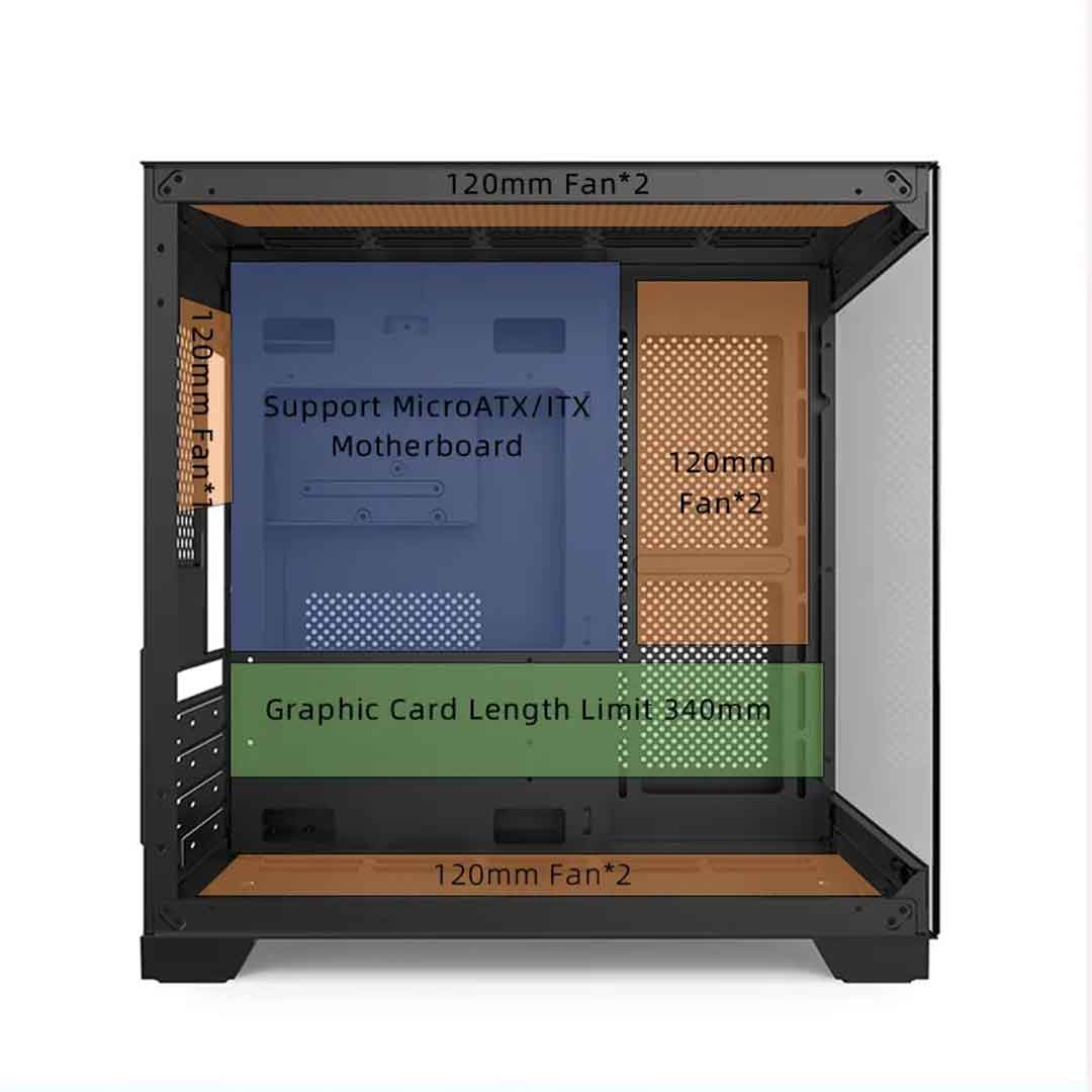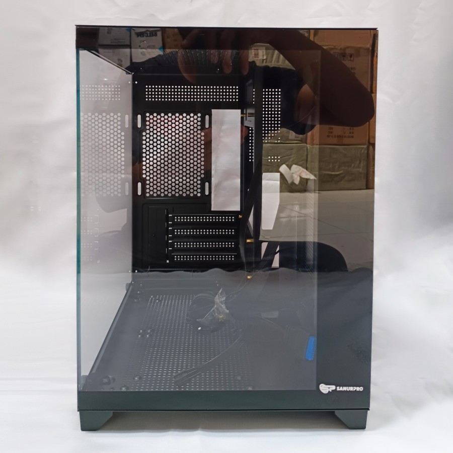 casing gaming dengan desain sea view box hitam ini sangat futuristik ketika semua komponen komputer mehong anda terpasang dengan rapi didalamnya